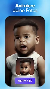 🤖 KI-gestützte Effekte: Die App nutzt leistungsstarke Künstliche Intelligenz, um realistische und lebensechte Animationen zu erstellen.