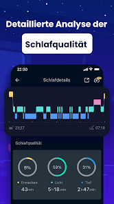 📊 Schlafanalyse: Die App liefert detaillierte Berichte über Schlafzyklen, um die Qualität des Schlafes zu bewerten.