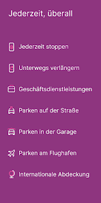 📲 Benutzerfreundliche Oberfläche: Die intuitive und einfach zu bedienende Oberfläche sorgt dafür, dass du alles im Griff hast – von der Parkplatzsuche bis hin zur Bezahlung.