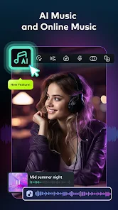 - 🎵 Music and Sound Integration: Enrich your videos with an extensive library of music tracks and sound effects.