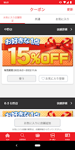 コーポン提示:アプリ内ではコーポンも配信。🎉 使える特別割引券がありお得に買い物ができる。