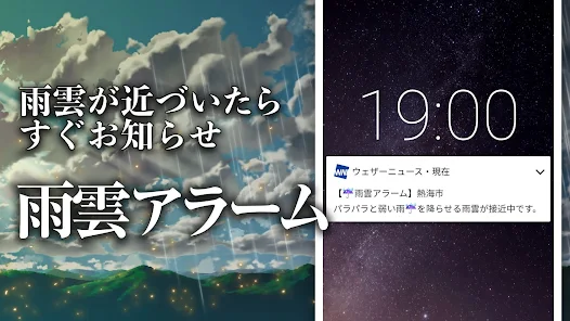 ✅ 通知機能:重要な天気情報を逃さないように通知が届きます。📣📲