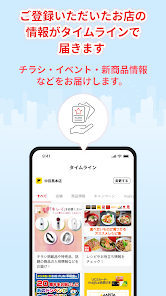 ⏰ タイムラインで最新情報を受け取る:登録した店舗の情報がタイムラインで配信され、クーポンやイベント、新商品情報などを確認できます。