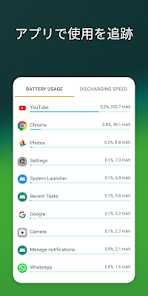 🔍 正確なデータ: バッテリー使用状況を正確にトラッキング。