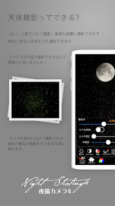 ✨夜撮カメラ - 夜景・夜空に素敵なカメラアプリ✨は、Studio ra,laboが開発した、夜景や夜空の美しさを存分に引き出す高性能のカメラアプリです📷🌃。通常のスマホカメラでは捉えにくい暗所における撮影を、このアプリが大幅にクオリティを向上させてくれます🎇。多種多様な機能と使い勝手の良さが魅力で、初めてのユーザーでも簡単に高品質の写真を撮影できるインターフェイスが嬉しいポイントです👩💻🌌。他の類似アプリと比べ、このアプリは機能の充実度と操作性の良さから多くの支持を集めています👍。ぜひこのアプリをダウンロードして、夜の世界をキャプチャしてみましょう!📸✨