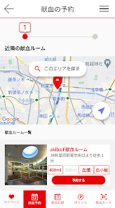 🔍 献血スポット検索: 近くの献血ルームや献血バスが簡単に探せます。
