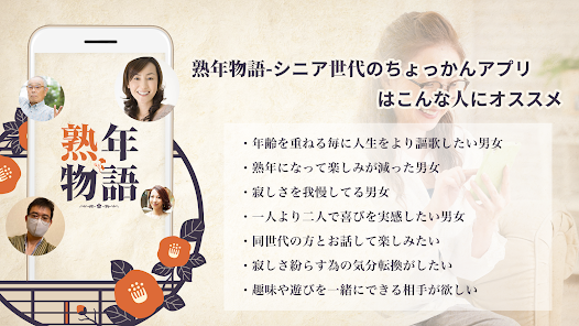 📱💬 熟年物語はSunshine LLCによって開発された、シニア世代向けの交流を促進するアプリです。👴👵このアプリの特徴は、熟年層のユーザビリティに特化しており、利用者が簡単に友達を作ったり、情報交換を行うことができます。🌐💡他の類似アプリと比較して、私が熟年物語を選んだ理由は、直感的でわかりやすいインターフェースと、熟年層に適したソーシャル機能の豊富さにあります。長年の経験からくる機能性と安心感により、ユーザーは快適な通信体験を得ることができるでしょう。🎵🌟このアプリをダウンロードして、新しい交友を見つけたり、有益な情報を得る喜びを見つけましょう!📲💖