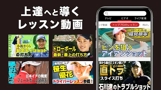 👓 高画質動画: レッスン動画からプロゴルファーのプレイ解説まで、高解像度での視聴が可能です。
