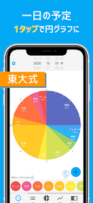 このアプリ最大の特徴は、一日のスケジュールを円グラフで表示し、一日の時間の流れを直感的に把握できることです。色分けされたタスクや予定が一目でわかり、忙しい一日の構成を瞬時に理解できます🌟。