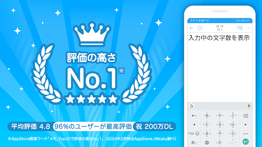 📱「文字数カウントメモ」は、Miraku inc.が開発したテキスト入力・編集アプリです。文章の文字数をリアルタイムでカウントする機能が特徴で、ブログを書くライターやSNSの投稿を心がけるユーザーにとって非常に便利です。📝他の類似アプリと比較して、シンプルなデザインと直感的な操作性、高いパフォーマンスが選ばれる理由です。✨文章制作の過程で文字数を気にする必要がある方々にとって、このアプリは時間を節約する強い味方となり得るでしょう。多機能ながらも使いやすさをキープしている点がユーザーエクスペリエンスを向上させています。🚀みなさんもこの素晴らしいアプリをダウンロードして、執筆の効率をアップしましょう!