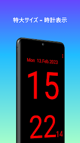 このアプリの最大の特徴は、その巨大なディスプレイです。大画面を使用して、遠くからでも時間をはっきりと確認できるため、視力が弱い方やより大きな表示を好む方に最適です。🔍👓