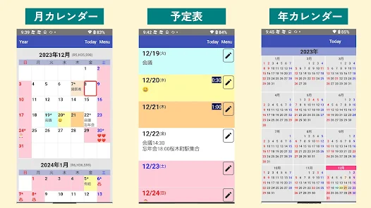 🌟 高速な動作: カレンダーの起動や日にちの切り替えがサクサクと動き、ストレスフリーで予定の確認が可能です。