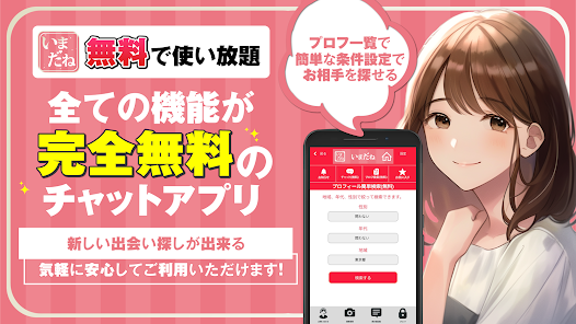 💡「使い放題の出会い探しアプリ いまだねチャット」は、株式会社ケアが開発したコミュニケーションを目的としたアプリです。多種多様な機能を持つ本アプリは、利用者同士の距離をグッと縮めることを可能にします。🌟ユーザーフレンドリーなインターフェースと、容易な操作性を持ち合わせており、出会いを求める人々にとって非常に魅力的な選択肢です。📱競合が激しい出会い系アプリの市場で、「いまだねチャット」を選ぶ理由は、その手軽さと親しみやすさにあります。😊さらに、リアルタイムでの交流が可能な点もユニークな特徴です。これらの特徴が融合し、ユーザーにとって快適で安全な環境を提供しています。🔍試してみたいと思いませんか?皆さんも是非ダウンロードして、新しい出会いの世界を探検してみてください!📲