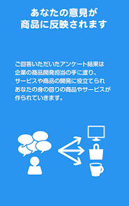 📊 市場調査貢献: 回答したアンケートは商品開発やサービス改善の市場調査に役立てられるため、社会貢献にもつながります。
