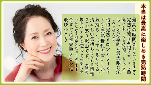 🌟 昭和完熟メロン アプリレビュー 🌟 ご利用の皆様にとって、時を超えた新しいコミュニティスペースとなることを目指し、「昭和完熟メロン」は熟年世代専用のソーシャルアプリとして登場しました。このアプリは、40代から60代以上のユーザーが中心で、同世代との交流や情報共有に特化しています。👴👵 開発者の関根弘子氏は、熟年世代に焦点を当てた独特のユーザー体験を提供し、共感を呼ぶコンテンツを提供しています。🌸 なぜこのアプリを選んだのかというと、同年代向けのアプリの中でも特にユーザーフレンドリーで、安心して楽しめるプラットフォームが整っているからです。🎶 さあ、ご自身の昭和時代の思い出に浸りながら、新たな仲間を見つける旅に出ましょう。まずは「昭和完熟メロン」をダウンロードして、豊かなセカンドライフを始めてください!🎉📲