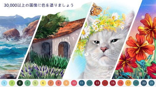 🎨 手軽に楽しめる: 数字に従って色を塗るだけなので、難しい操作は一切なく、誰でもすぐに楽しむことができます👌。さらに、アプリ内でのインタラクションもシンプルで、学習曲線がほとんどない点が良いです。